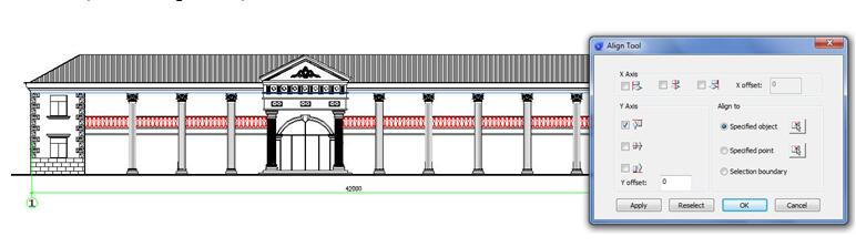As an example, we will put this tool in action. We can apply this tool to align a high quantity of objects (columns) in the correct place in this complex drawing as shown in the picture below: